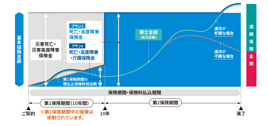 1. 加入後10年間は保障を抑制することで、資産形成を重視。効率よく運用。